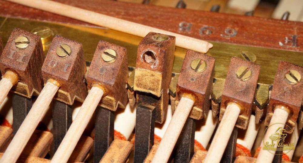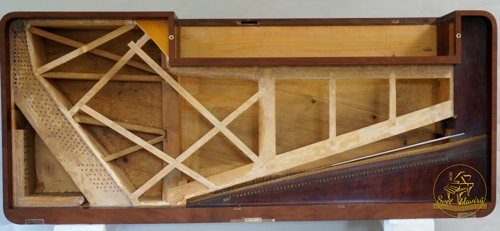 Stolový klavír, nástroj je signován Pape. Facteur de Piano, a Paris, mahagonová skříň. Jedná se o velmi vzácný nástroj. Nástroj byl velice precizně zhotoven a velice krásný. Předcházejícími pokusy o restaurování byl spíše poškozen. Díky finanční podpoře K Ú Jihomoravského kraje bylo možno přistoupit k nápravě v restaurátorské dílně Jana Bečičky. Následuje rozsáhlá restaurace: oprava korpusu, oprava poškozených lubů, naklížení žeber na rezonanční desku z rezonančního smrku a vklížení do nástroje, oprava a umístění původní kobylky, zhotovení kolíčníku a postupné lepení do korpusu, rozmístění ladících kolíků na količníku, rozmístění strunových svazků, povrchová úprava rezonanční desky, špánování prasklin dna a impregnace korpusu, přiklížení uvolněného dýhování, obnova celistvosti povrchové úpravy, oprava poškozených dusítek, sesazení mechaniky a její regulace, čištění klaviatury a mechaniky, doplnění ladících kolíků, doplnění strun (kopie historických) oprava pedálového mechanizmu, který byl silně poškozen dřevokazným hmyzem závěrečná povrchová úprava.